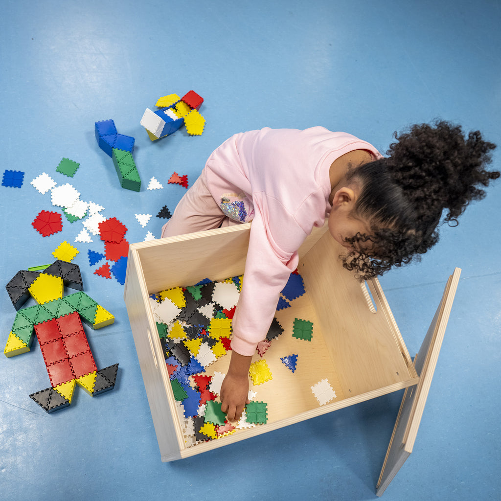 Ce grand coffre de rangement empilable à roulettes est idéal pour ranger et transporter facilement de grandes quantités de jouets. Son couvercle se ferme hermétiquement. Sa base à roulettes et son fond profilé facilitent l'empilage et le déplacement. À combiner avec les autres boîtes de la même gamme.
