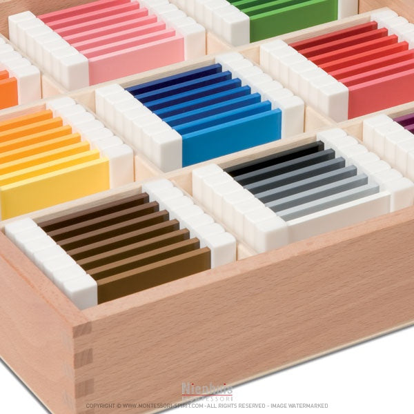 Description : la troisième et dernière boite des couleurs contient 9 séries de tablettes de couleurs classées en gradation de 7 couleurs, soit 63 tablettes au total.