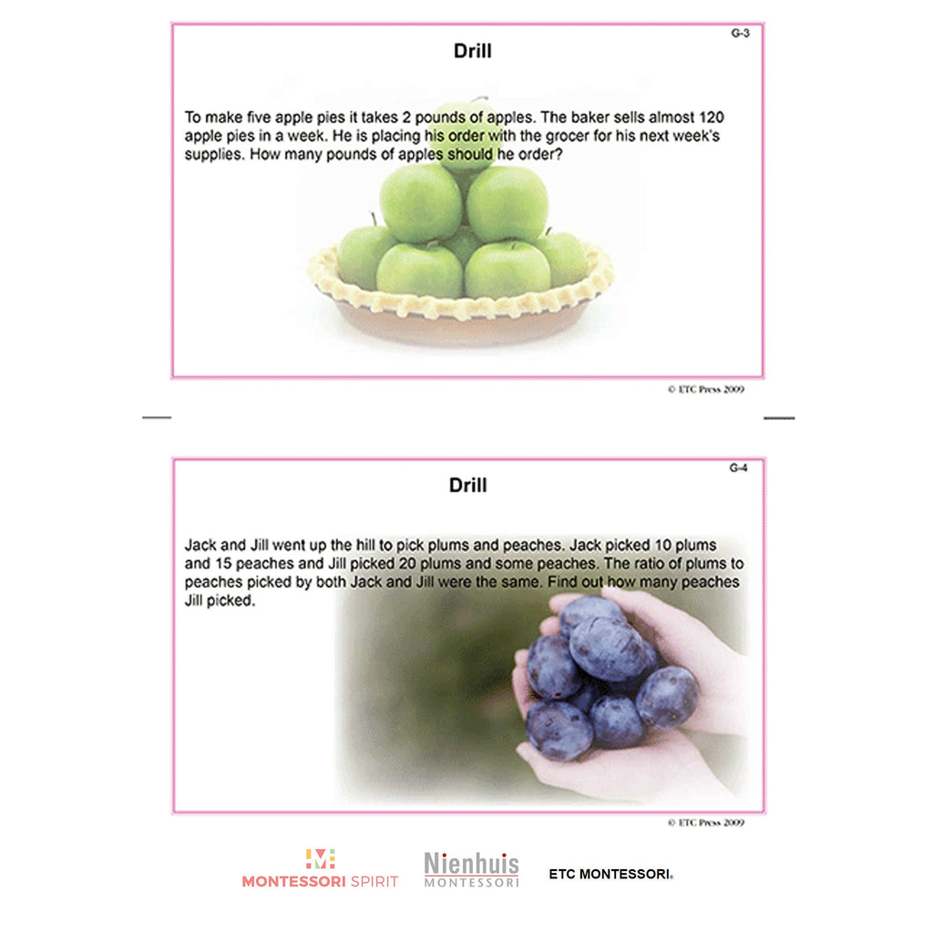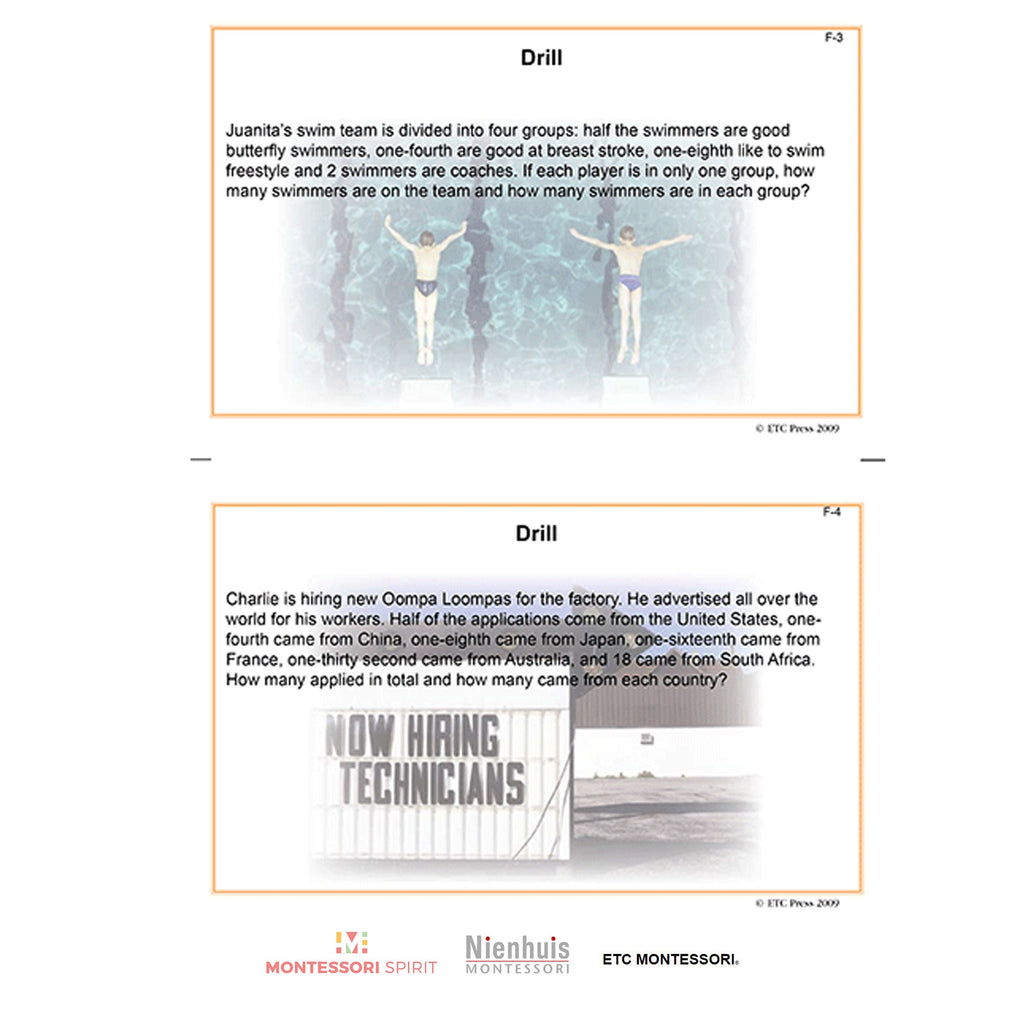 Printed in full color, each card is double sided. On the front side the students will find a section for Concept and another section for Operations. Turn the card over and each one contains a word problem that will challenge and move them towards developing higher level thinking skills using specific word problem strategies.