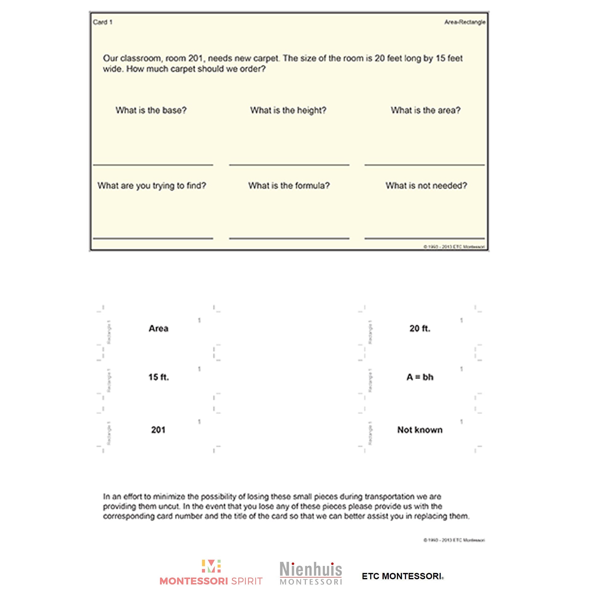This is a complete collection for the entire work associated with Area in upper elementary geometry. Includes word problems for the following: