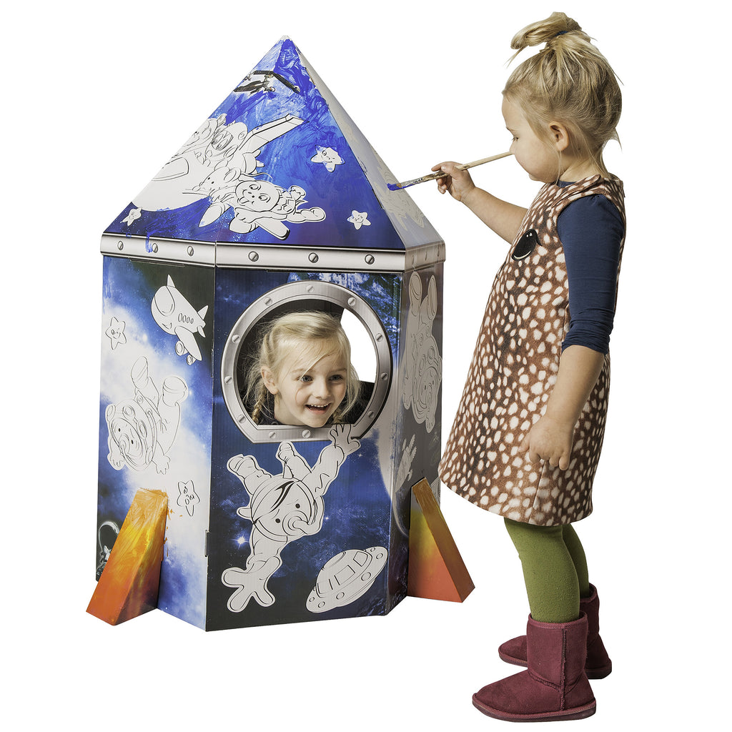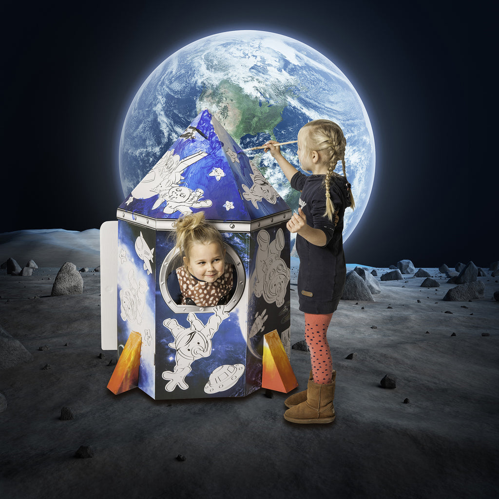 Grâce à son système de pliage et d'emboîtement pratique et à ses instructions claires, la maisonnette fusée s'assemble facilement, sans colle.