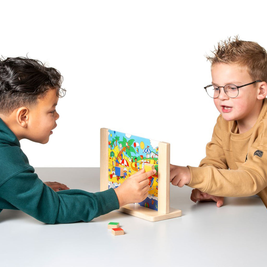 Par la conversation, ils enrichissent leur vocabulaire et développent leurs compétences en communication. Ce jeu favorise le travail d'équipe et aide les enfants à découvrir la force de la collaboration et la réussite partagée. Cette activité ludique leur permet d'acquérir des compétences essentielles en matière de collaboration et de communication en plaçant des aimants sur le plateau au même endroit que leurs coéquipiers.