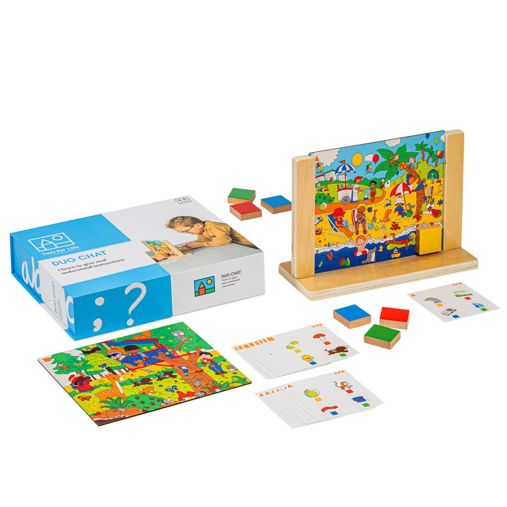 Jeu coopératif encourageant les enfants à accomplir des tâches en communiquant efficacement.